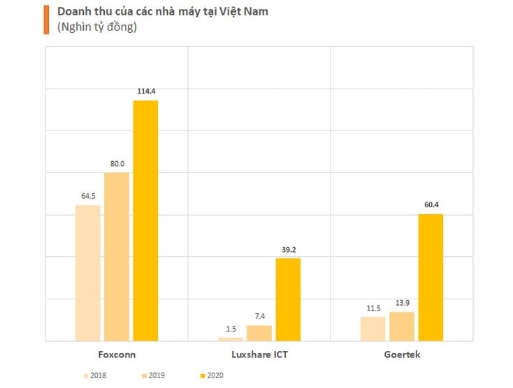 Số liệu quá khứ cho thấy, tổng doanh thu của Goertek tại Việt Nam năm 2020 bứt phá lên tới 60,4 nghìn tỷ đồng nhờ Goertek Technology Vina, vượt qua cả Luxshare ICT.